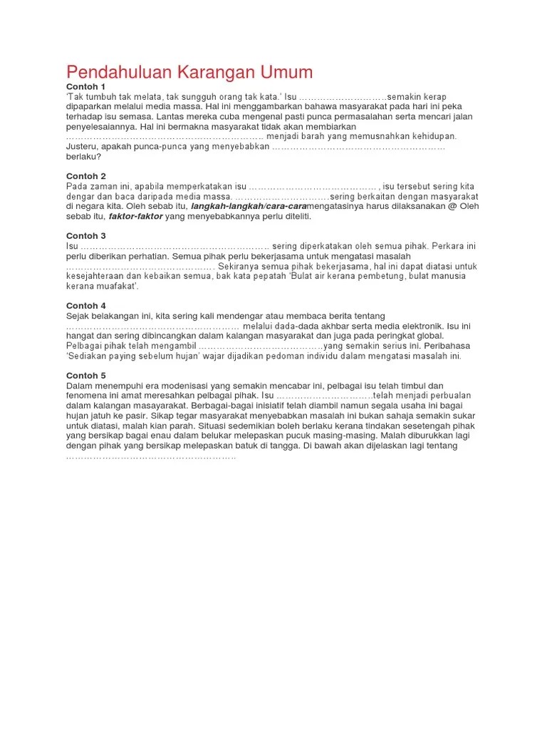 Contoh Pendahuluan Karangan - Kaedah Penulisan Pendahuluan Isi Dan Penutup Blogcikgusyidah. Umpama struktur badan manusia, pendahuluan karangan boleh diibaratkan sebagai kepala yang. Sebagai menggulung segala yang dibincangkan, akhir kalam, kesimpulannya, . Jenayah ditakrifkan sebagai perbuatan yang melanggar . Contoh pendahuluan karangan perbahasan dan ceramah yang cemerlang (spm) perbahasan. Contoh pendahuluan jenis definisi soalan: Pendahuluan yang bagus memungkinkan pembaca mengetahui apa yang akan anda tulis .
